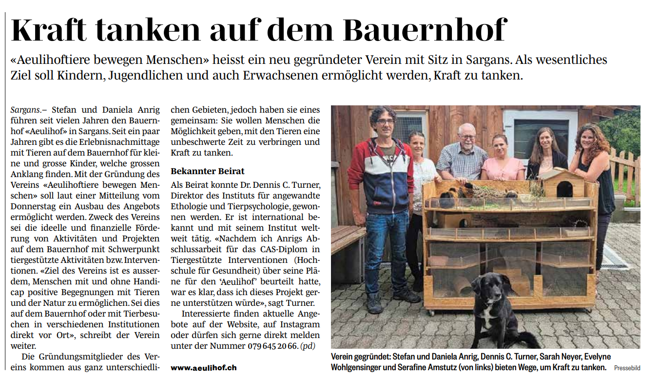 Hier sind weitere Infos zum neu gegründeten Verein "Aeulihoftiere bewegen Menschen" zu finden.